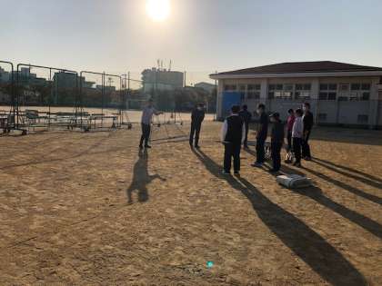 グランド整備、椅子だしや各係りの準備など体育大会の準備が行われていました。教職員も大きなテントを協力して建てています。