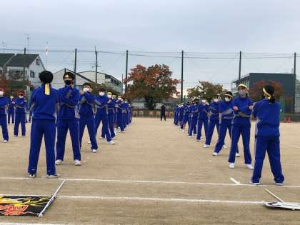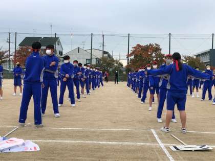 準備体操の様子です。体育委員が先頭でラジオ体操です。