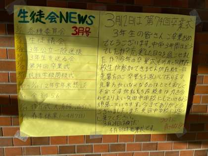 今年度最後の発行です。玄関てに掲示していますので、見てください。