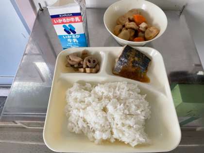 今日の給食です。3年生は5,6限目と式歌練習です。いただきます。