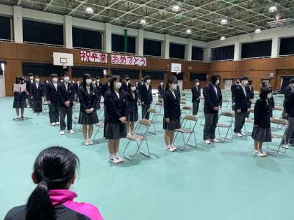 生徒会役員より送る言葉、3年生に対するお祝い動画。3年生代表より在校生に贈る言葉がそれぞれ交換されました。