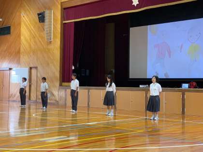 暑い暑い体育館でしたが、みんな元気よく、大きな声ではっきりと発表していました。