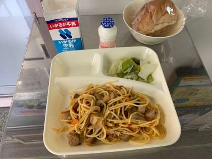 本日の給食は、トマトスパゲティでした。