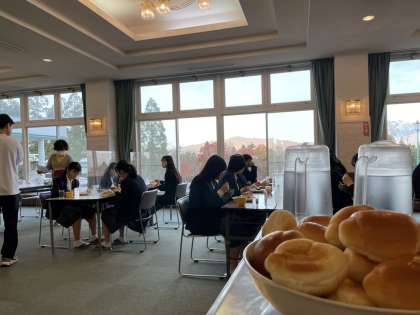 朝食を食べ、退館式を終えて、ナガシマスパーランドへ出発です!