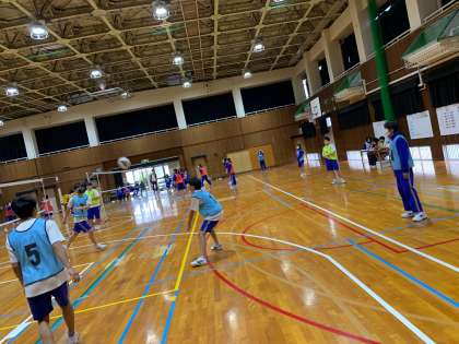 バレーボールをして、みんなで楽しく盛り上がっていました。
