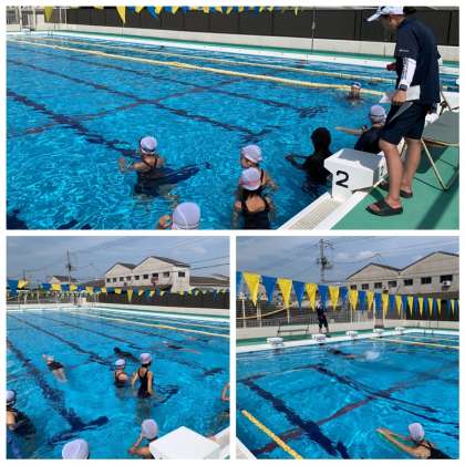 9月14日(水)2限1年生、3限2年生女子が最後の水泳授業でした。最後の授業なので、ストリームラインを確認したり、タイムを測ったり、ボールを使った水球を行いました。また、来年が楽しみです。