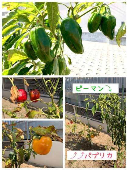 パプリカとピーマンは、今も健在!まだまだ実をつけています。文化祭で、採れた野菜がつやつやで、食材サンプルとまちがわれていましたがこうやって畑で実っています。ブロッコリーと白菜も楽しみです。