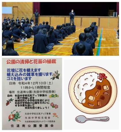 3、12/10(土)の午前中に公園の清掃と花苗の植栽が、午後からは寺子屋食堂があります。皆さんの参加を待っています。