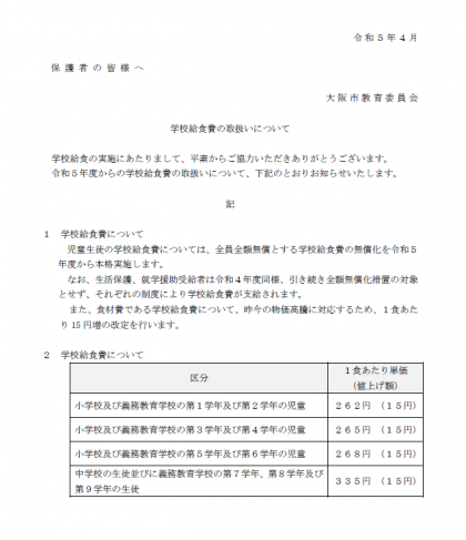 令和5年度学校給食費の取扱いについてのお知らせをご確認ください。≪令和5年4月11日付配付済み文書≫