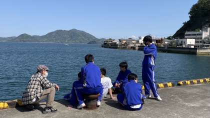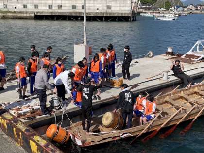 みんな揺れる船を怖がりながら、かいでんまに乗船しています。
