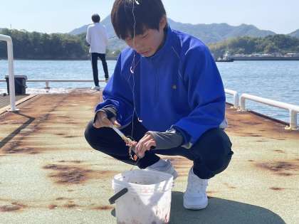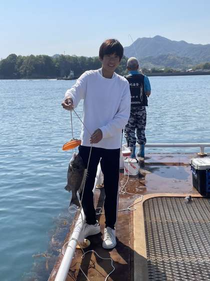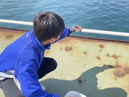 釣り体験を行いました。大きな魚を釣ってすごく嬉しそうです!えさをつけるしぐさも慣れていました!