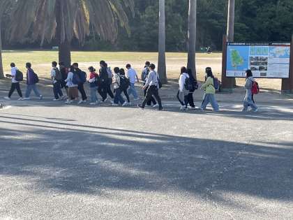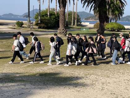 退島式が終わり、徒歩で毒ガス資料館へ向かってます。