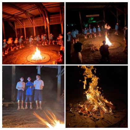 楽しかったキャンプファイヤーは、あっという間に終わり。79期生で誓いの言葉を確かめ合うことができました。
