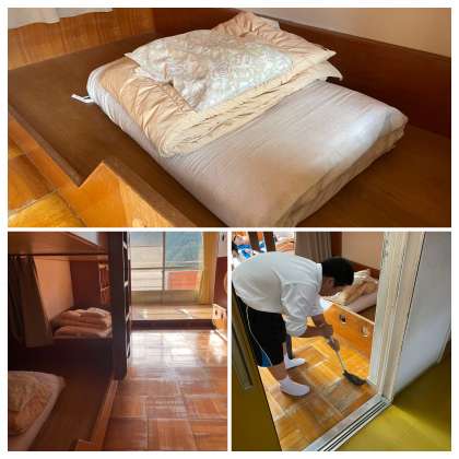 自分で使ったお布団や部屋の清掃をみんなと協力して行いました。