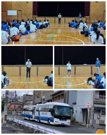 9月15日(金)、2年生は校外学習で関西サイクルスポーツセンターに行きます。体育館で出発式の後、バスに乗り込み出発しました。