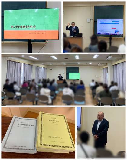 10月21日(土)、2階多目的室で、第2回進路説明会がありました。3年生はいよいよ卒業後の進路を決める時期が近づいてきました。昨今は多様性のある学校が増えてきました。多くの情報を集めて一人ひとりに合う進路決定をして欲しいと思います。