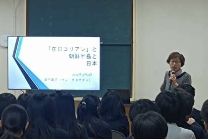 2月14日(水)6限、矢田中学校の朝鮮子ども会の梁千賀子ソンセンニムより、韓国・朝鮮との歴史から様々な背景について学ぶことができました。学んだ事をこれからの学校生活、普段の生活にも活かして行きましょう。