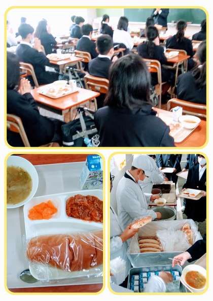 4月9日(火)、今日の配膳は、じゃがいものミートグラタン、レタスのスープ、みかんの缶詰め、加工パン、牛乳です。
