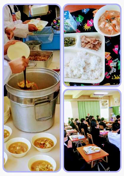 給食の様子(1年2組) 公開日 2024/04/10 更新日 2024/04/10 学校日記 4月10日(水)、今日の献立は、ごはん、豚肉のしょうが焼き、豆腐の味噌汁、じゃこピーマン、牛乳です。 いいね(0)