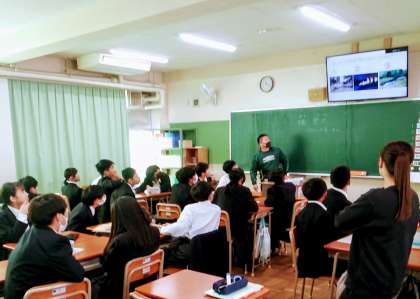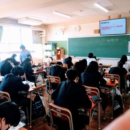 4月10日(水)、2年1組の技術の授業では、ミニトマトの種類について学習していました。2年2組は、家庭科の授業で、植物や動物の学習をやっていました。
