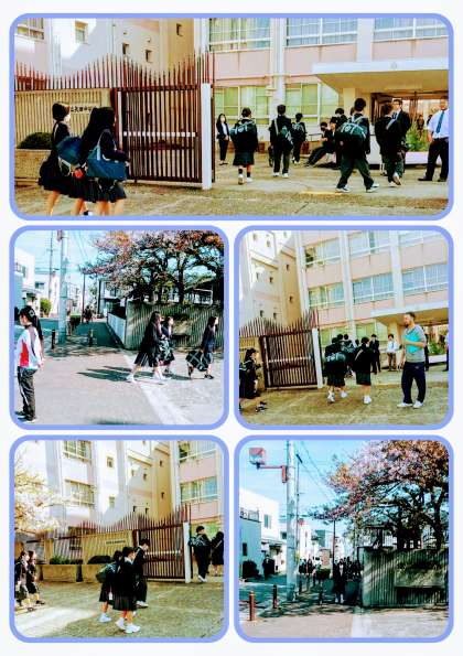 4月13日(土)、朝の登校の様子です。本日は、土曜参観が行われました。