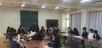 4月19日(金)放課後、2階多目的室にて、生徒議会が行われました。最初に、自己紹介と半年間の抱負をいっていました。その後、各学年の報告と各種委員会の報告がありました。