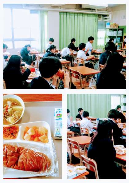 5月1日(水)、今日の献立は、黒糖パン、豚肉と野菜のカレースープ煮、変わりピザ、ミックスフルーツ(缶)、牛乳です。『ピザ』は、イタリアのナポリ地方の料理で、小麦粉とイーストで作ったピザ生地に好きな具をのせて、オーブンで焼いたものです。「給食の変わりピザ」は、ギョウザの皮に、ツナ、コーン、ピーマン、ピザソース、チーズを混ぜ合わせた具をのせ、焼き物機で焼いています。