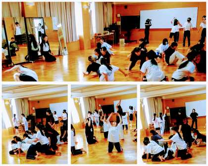 5月2日(木)、4階多目的室にて、ダンス部のみんなが大会に向けての練習に励んでいました。