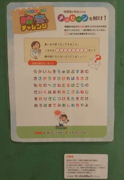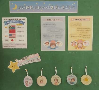 保健室前の掲示物です。とても大切な内容が掲示されています。心がけて読んでくださいね!