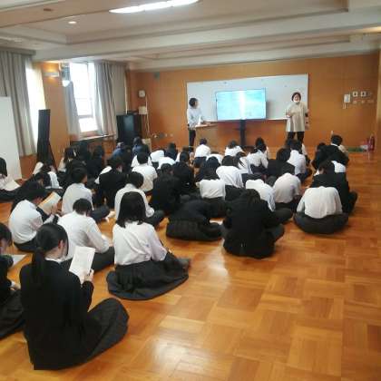 5月8日(水)、4階多目的室にて、1年生に向けて、一泊移住のしおり説明をしました。