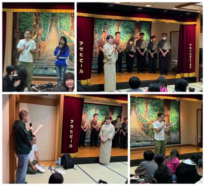 ホテルから女将さんからは「昨夜のレクは盛り上がって良かったです。良かったら今度はご家族でお越しください」とあいさつがありました。生徒代表のあいさつ楽しかった思い出を話してくれました。