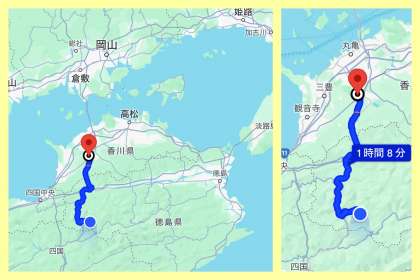 8:10バス出発。徳島県新祖谷温泉(ホテルかずら橋)から今度は香川県琴平へ向かいます。