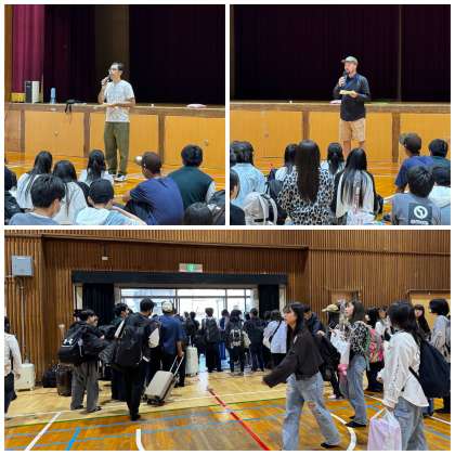 明日15日(水)は代休になります。ゆっくり休んでください。また16日(木)に会いましょう。16日は木曜日の時間割で、しおりを持ってきてください。