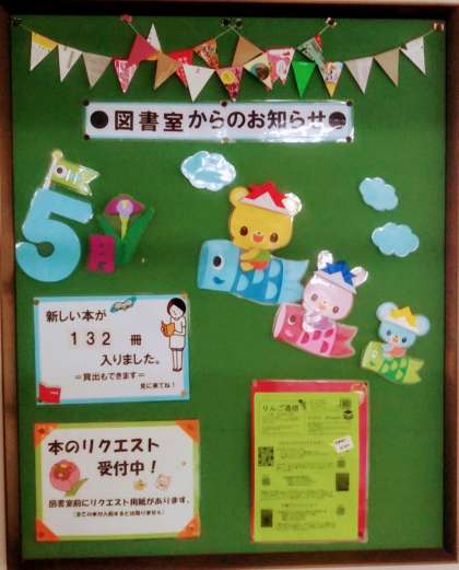 職員室前の掲示板に図書室からのお知らせが掲示されています。