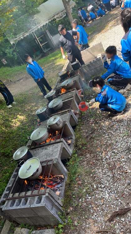全班火がつき、沸騰を待っています。 煙で目が痛いです(泣)