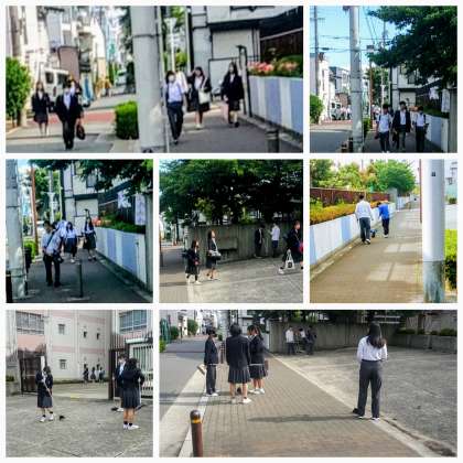 登校と清掃の様子
