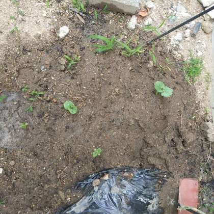 教室裏の小さな畑では、ゴーヤの苗がスクスクと成長している横で、昨年度の種が芽吹いています。