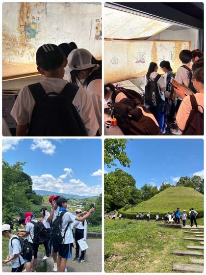 高松塚古墳壁画館では、展示見学をするクラスと高松塚古墳と一緒に映え写真を撮るクラスに分かれて活動しています。