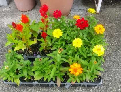 昨日【6月7日(金)】、地域の方からお花をいただきました。ありがとうございました。本日、植木鉢やプランターに植えました。