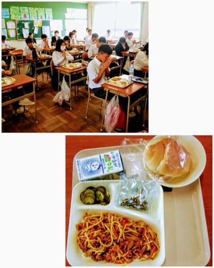 6月11日(火)、今日の献立は、ミニコッペパン、カレースパゲッティ、きゅうりのピクルス、ミニフィッシュ、牛乳です。『よくかんで食べよう!』よくかんで食べると体に良い効果がたくさんあります。○むし歯を予防する。?唾液が多く分泌されることによって、口の中を清潔にし、むし歯を予防する。○消化・吸収をよくする。?食べ物が細かくなり、唾液とよく混ざるため、胃や腸で消化・吸収がしやすくなります。○食べ過ぎを防ぐ。?脳にある満腹中枢が刺激されることで満腹感がえられ、食べ過ぎを予防します。○脳の働きをよくする。?あごが動き、まわりの血管や神経が刺激されて脳の血流がよくなります。