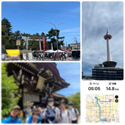 遅くなりましたが、5月は京都市内を踏破しました。京都駅から北野天満宮、金閣寺を経て、出町柳まで約15キロの道のりでした。