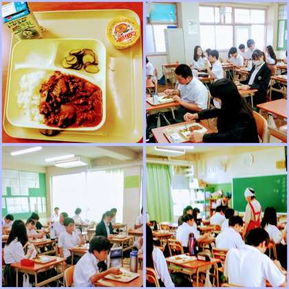 7月3日(水)、今日の献立は、夏野菜のカレーライス、きゅうりのサラダ、みかんゼリー、牛乳です。『きゅうり』は、暖かい気候でよく育つ夏が旬の野菜です。現在では、ハウス栽培でも作られるので、一年中食べることができます。【なにわの伝統野菜の一つである「毛馬(けま)きゅうり」は、大阪市都島区毛馬町で初めて作られたといわれています。】