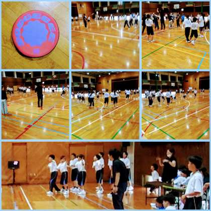 7月4日(木)5・6時限目、冷房の効いた体育館にて、『ドッジビー』と『ドッジボール』のスポーツ大会が行われました。「ドッジビー」は、クラスを男女別A・Bに分けてのリーグをやっていました。「ドッジボール」は、男女別クラス対抗をやっていました。最後に、先生方も入ってのクラス対抗のドッジボールが行われました。どの試合もとても白熱した大会でした。