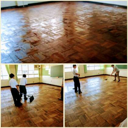 7月5日(金)放課後、3学年とも油引きをしていました。とても綺麗になりました。