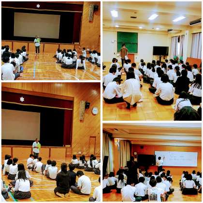 7月19日(金)、1年生は、2階多目的室にて、『夏休みのしおり』を使って、2年生は、4階多目的室にて、夏休みの勉強のアイテムに使えるものについて、3年生は、体育館にて、『夏にor夏を』カケルものについてのお話しや「努力!」についてのお話しがありました。