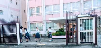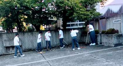 9月2日(月)、台風10号が去り、正門前と玄関前の桜の落ち葉の清掃を男女バスケットボール部員たちが綺麗にしてくれていました。