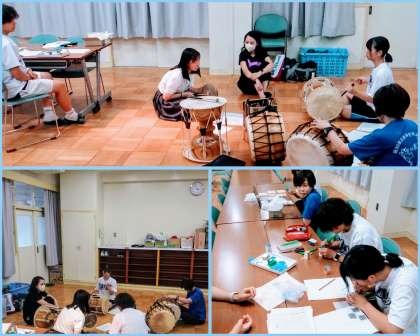 9月2日(月)放課後、2階多目的室にて、楽曲の練習と判子などの製作の様子です。