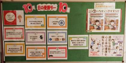 10月2日(水)、保健室前掲示板に10月10日の【目の愛護デー】に関する掲示物が更新されています。