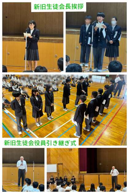 今日の校長先生のお話は、矢田中学校生徒会役員のこれまでの活躍と今後の活動の期待について、また、全校生徒に対して責任ある仕事を担う大切さのお話でした。