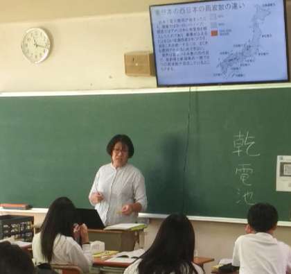 10月9日(水)、各教室にて、家庭科の授業では、洗濯物の日陰干しやドライクリーニングのお話しをしていました。技術科の授業では、東日本と西日本の周波数の違いについてのお話しをしていました。